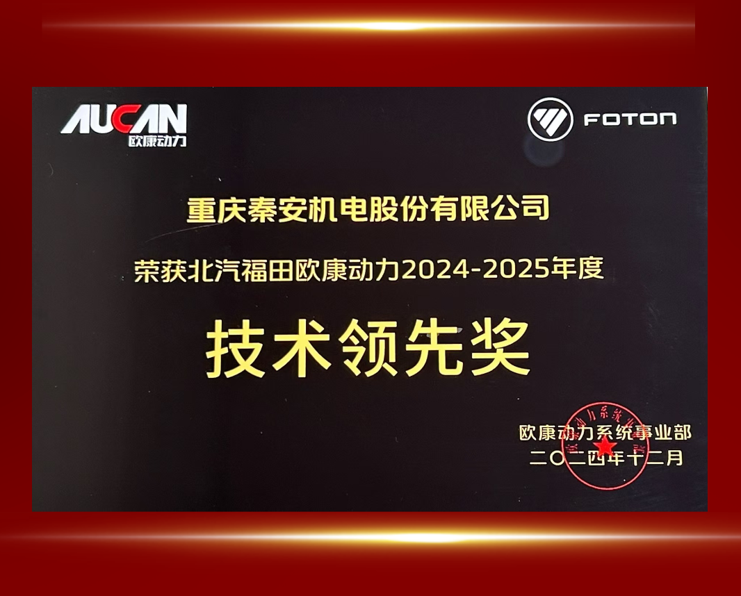 秦安股份榮獲北汽福田歐康動力2024-2025年度技術(shù)領(lǐng)先獎