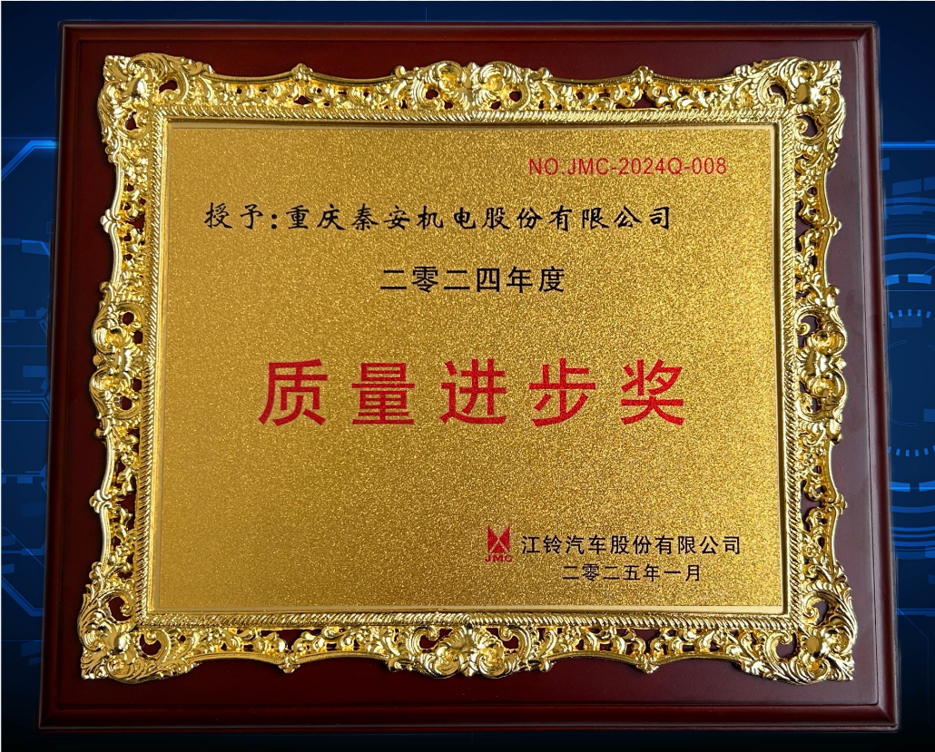 秦安股份榮獲江鈴汽車2024年度質(zhì)量進(jìn)步獎